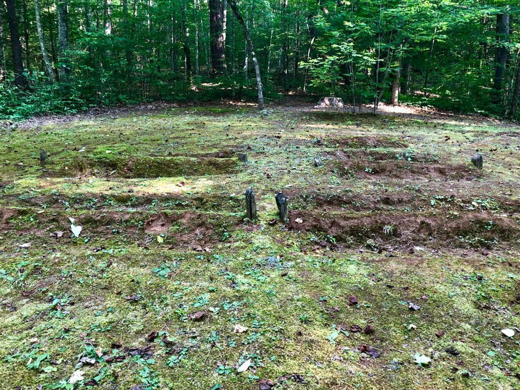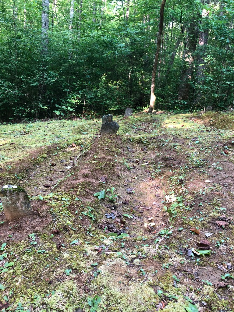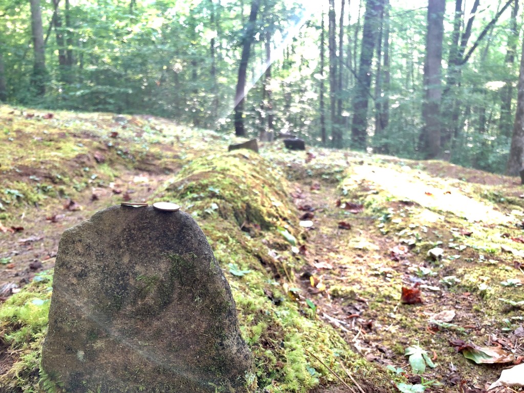 The cemetery sits in a quiet, mossy clearing in the woods and is unlike any that I’ve written about here before. The ground is not typically even, propped up by evenly spaced, hidden caskets six feet below. There are no finely cut markers with dates or names, let alone a fanciful verse or a carved angel. There is no gate, nor a sign warning visitors that they have entered hallowed ground.